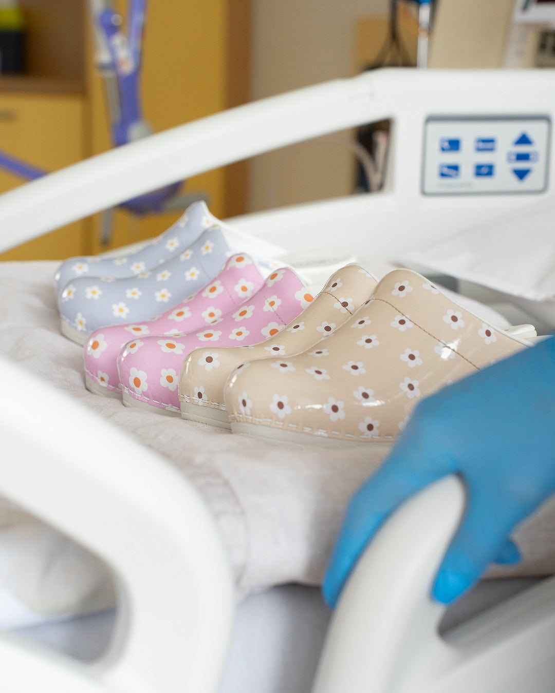 Many nurses come to work in normal shoes. At work and/or in the department, they put on their clogs or sneakers. This is mandatory in certain workplaces due to hygiene requirements. Florensa clogs are nice and quick to put on and take off in that case.